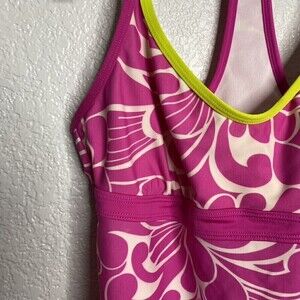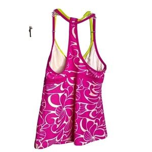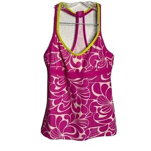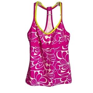 Athleta Tankini Pink Aloha Floral Pink White tankini top Size Small Racerback