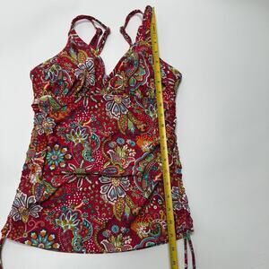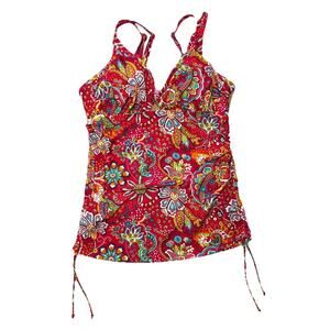 Athleta Tankini Swimsuit Red Paisley Size 34 D/DD Pads Included Cinched Sides M