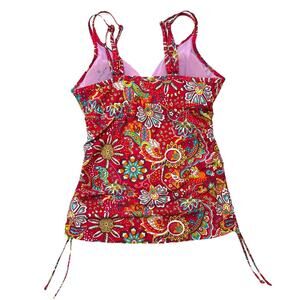 Athleta Tankini Swimsuit Red Paisley Size 34 D/DD Pads Included Cinched Sides medium