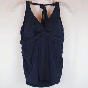 Athleta Tankini Tara Top Navy Blue Halter Tie Swim Top Swimsuit Underwire Lightly Padded Removable Cups