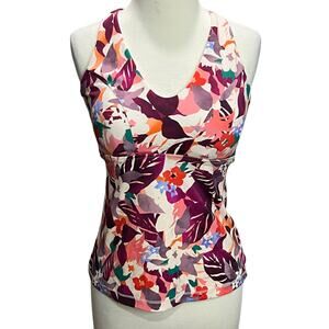 Athleta Tankini Top Womens Size M Pink Tropical Print Daybreak Triangle Strappy UPF50