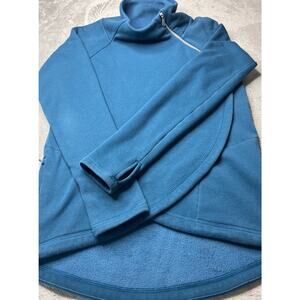Athleta Teal Blue Pullover Funnel Neck Thumb Hole Sweatshirt Top
