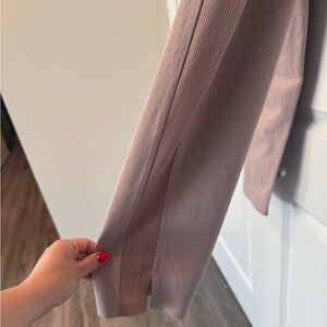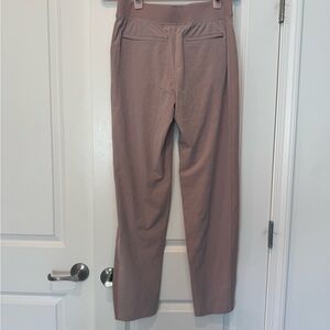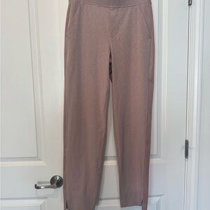 Mid Rise. Semi-fitted, skims easily over the body. Front slant pockets. Secure zip back pockets. Textured fabric is cozy with gentle compression, yet moves with you without restrictions. Easy to pack. Comes out of your suitcase wrinkle free! Ribbed panels for mobility & comfort. SUSTAINABLE: Made from Recycled Polyester, a material sourced from post-consumer plastic bottles that helps lessen our impact on the world Excellent used condition