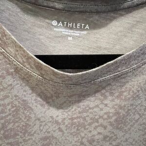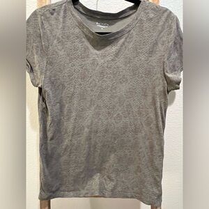 Athleta gray tee with a subtle textured pattern. Ideal for everyday comfort. 18”pit to pit 24”L. 542