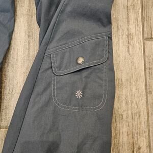 Athleta The Dipper cargo pants in gray. A classic early 2000s Athleta style featuring a low-rise waist, straight leg fit, front and back pockets, and a side cargo pocket. Made from durable, lightweight stretch fabric for ease of movement and comfort. Perfect blend of function and vintage-inspired utility style. Measurements are included in the photos. Excellent pre owned condition.