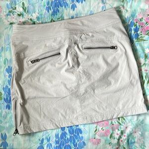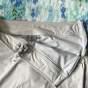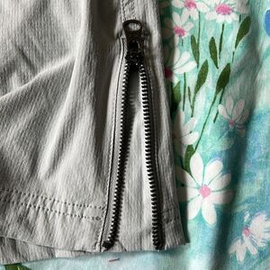 Excellent condition light stone gray color. Very stretchy. Sides zip but just for aesthetics. Measurements in photos.