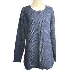 Features: Style 870515. Basket weave knit, crew neckline, side slits, high low hem, pullover styling, long sleeves.