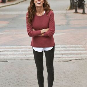 Athleta Thermal Honeycomb Split Hem Crewneck Merino Wool Pullover Sweater Rust