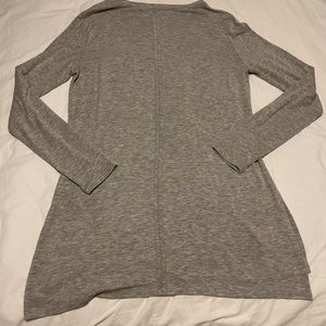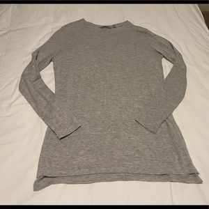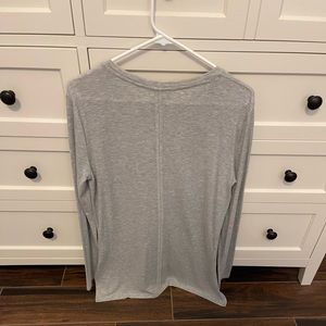 Gently-used Athleta Threadlight Layering Long Sleeve Gray Heather T-Shirt Women’s Size Small. Features side slits.