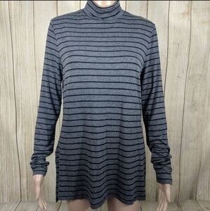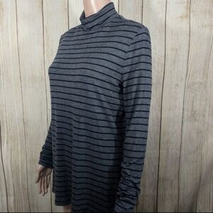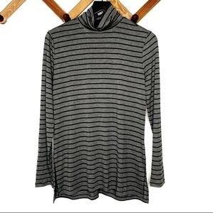 Athleta Threadlight Layering Turtleneck Top Grey Black Stripe Long Sleeve Small