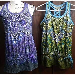 Athleta Tic Tac Toe Mandala Racerback Bra Tank Top Lot of 2 Long Purple Blue