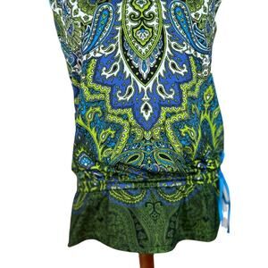 Athleta Tic Tac Toe Yoga Green / Blue Paisley Tie Waist Size Small