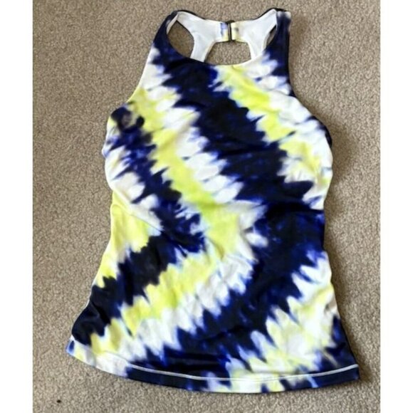 Athleta Tie Dye High Neck Tankini Top SIZE 32D/DD Swim Top, Blue Multi