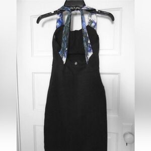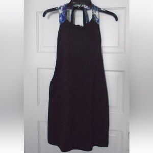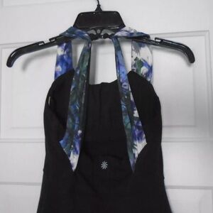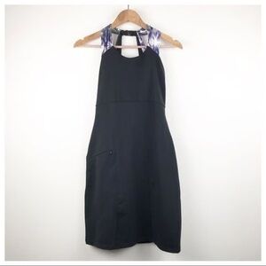 Athleta Tie Dye Strap Black Halter Dress with Shelf Bra & Zip Pocket XS