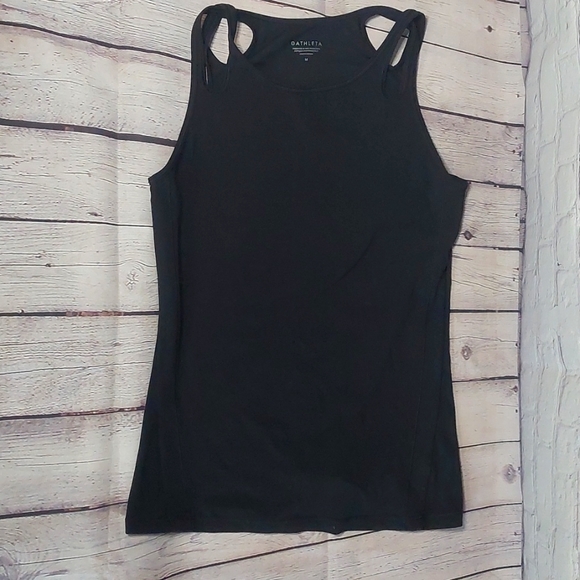 Black Athleta tank top. Straps cross on shoulders. EUC