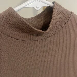 Athleta Top Renew Seamless Mockneck , New, Ribbed, Fitted Tan, Sz Large