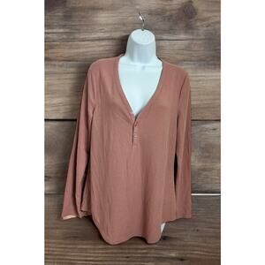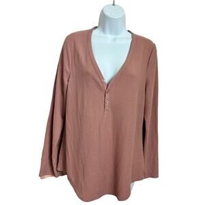 Athleta Top Size L Wind Down Sleep Waffle Knit Henley Sleepshirt Palermo Pink