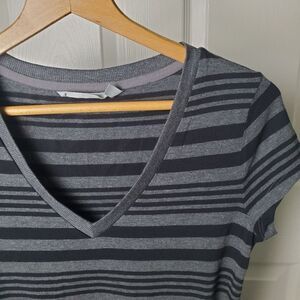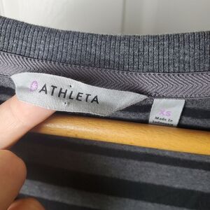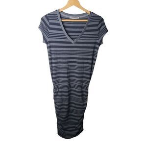 Athleta Topanga striped v-neck shirt dress with ruched sides. Super stretchy fabric for a comfy and casual fit. Pre-owned, no flaws.