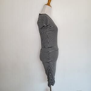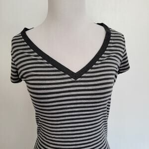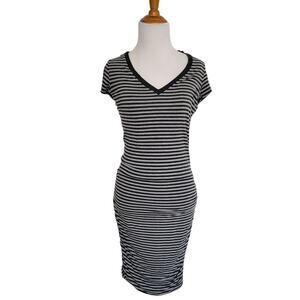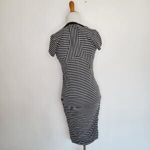 Athleta Topanga T-Shirt Dress Gray Striped Stretch Ruched Sides XS