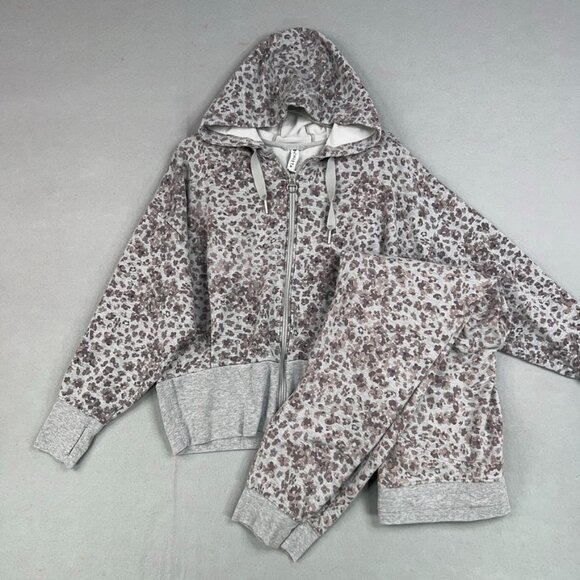 Athleta Track Suit Set Womens Large Gray Leopard Balance Hoodie Jacket Jogger