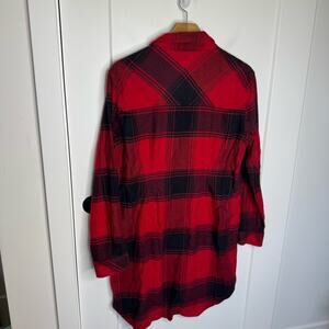 Athleta Trail To Town Button Down Shirt Dress Red & Black Plaid Print Size Large