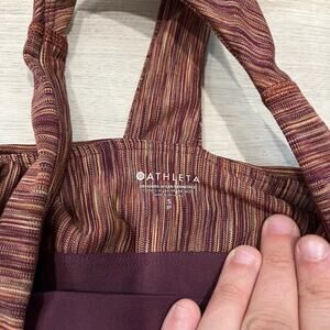Elevate your workout wardrobe with this stylish Athleta set! This set includes a pair of Transcend 7/8 leggings in a beautiful red textured design and a matching Scoop Racer Back Tank. Both pieces are size small and in excellent condition. Perfect for yoga, running, or everyday wear, this set offers both comfort and style.