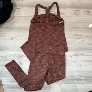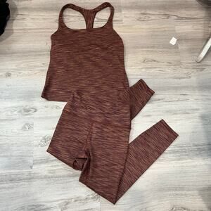 Athleta Transcend Red Textured 7/8 Leggings Scoop Racer Back Tank Set Small
