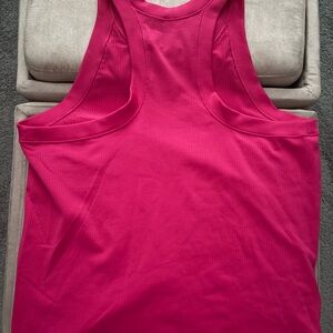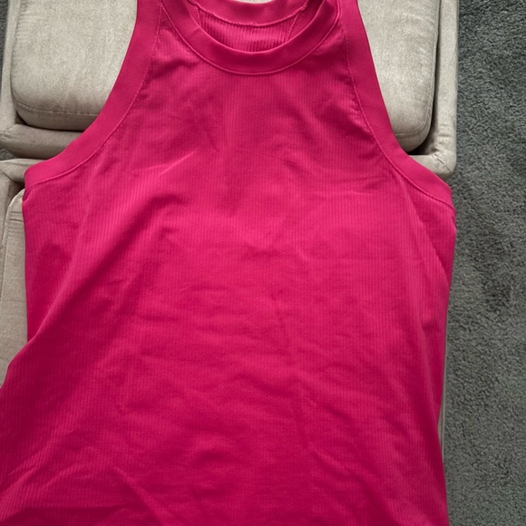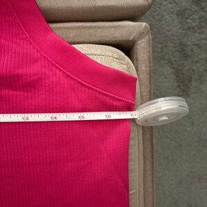 Athleta magenta transcend ribbed racerback tank. Worn one time. No tags so see measurements. Fits like a snug L. Super soft.