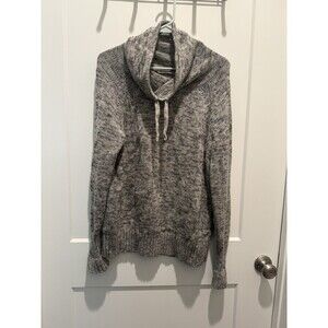 Athleta Traverse City Merino Wool Cowlneck Sweater Large Drawstring Gray Heather