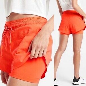 Athleta Trekkie Crest 2 in 1 Shortie in Racing Red Athletic Ripstop Neon Shorts