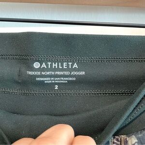 Athleta Trekkie Floral North Printed Joggers in Green with a Blue Hue. Beige floral print. Zip pockets. Pre-owned in excellent condition - size 2.