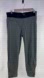 Features: black contrasting elastic waistband, zippered front pocket, two back zippered pockets, faux fly, pull on, zippers at ankles, gray textured nylon