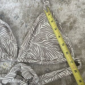 Athleta Triangle Bikini Top In Palm Leaf Beige Print . Size medium. In my opinion runs large. No padding. Small stain at inside liner. Very soft material. Good condition.