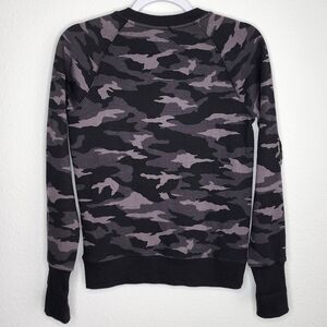 Athleta Triumph Camo Crewneck Sweatshirt Thumb Holes Black Gray XXS