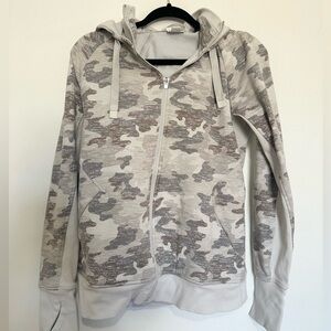 Athleta Triumph Full Zip Sweatshirt Hoodie Jacket Light Gray Camo Size MT
