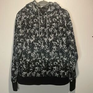 Athleta- “Tugga Sherpa Jacquard Hoodie” Black & White w/ Thumb Holes- Size Large