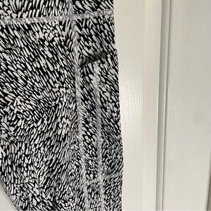 Trendy leggings with a bold black and white pattern. Perfect for casual outings or workouts.
