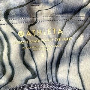 Athleta Ultimate Stash Pocket 7/8 Tight Leggings Athletic Pants Size Small Inseam 25” Gently used with minor signs of wear in great overall condition no rips or stains! Fitted next to the body with a high-rise waistband 2 stash pockets, 1 back waistband pocket. Dries in a flash for ultimate comfort when breaking a sweat. Machine wash and dry. Fully adjustable NeverEnd drawstring won't get lost in the wash.