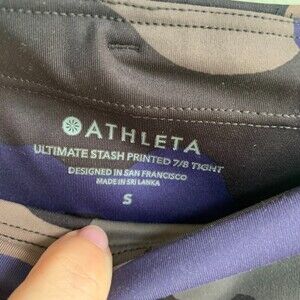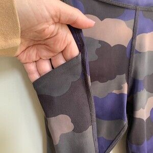 Athleta Ultimate Stash Pocket Printed Camo Leggings 7/8 Tight Pants Small Purple