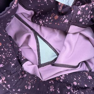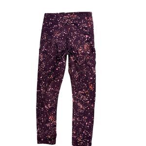 Maroon, red, and pink splatter printed capri leggings, in very good condition.