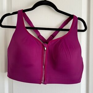 Athleta Ultimate Zip Front Sports Bra Size 40D High Intensity Adjustable Purple