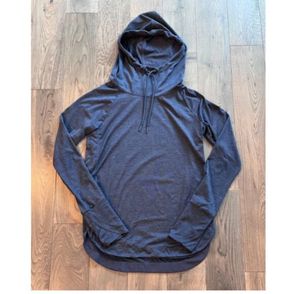 Keywords: Athleta hoodie, performance hoodie, athleisure wear, yoga hoodie, gym sweatshirt, moisture-wicking activewear, running hoodie, XS navy hoodie, workout top