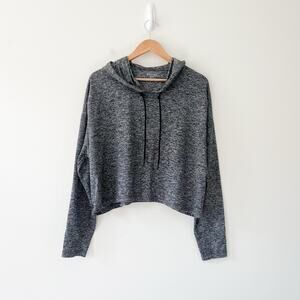 Athleta Uptempo Short Cropped Charcoal Gray Hoodie Sweatshirt, Size Large