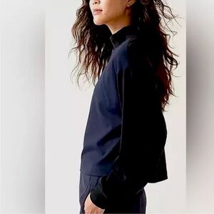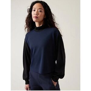Athleta Venice Colorblock Crop Mockneck Sweatshirt Size Small Navy/Black