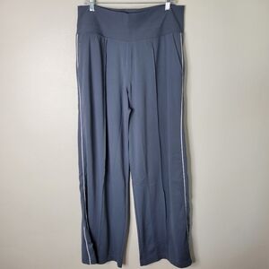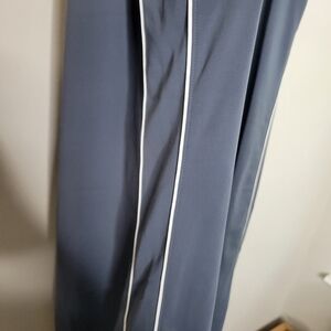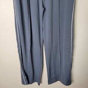Elevate your style with these chic gray high-waisted pants with side stripes and wide legs. Perfect for any occasion, offering both comfort and elegance.