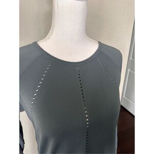 Athleta Ventilated Long Sleeve Top with air holes size large dark gray color no size tag but fits like a large! Very stretchy and comfortable