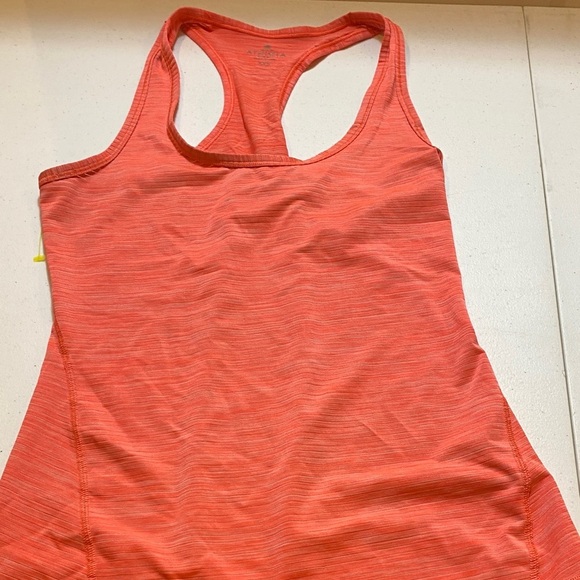 Bright orange Athleta tank with subtle stripe pattern. Ideal for workouts.
