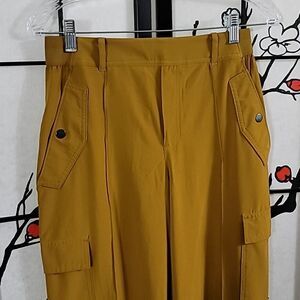 Athleta Vienna Cargo Pant Travel Commute Relaxed Wide Leg Brass Yellow