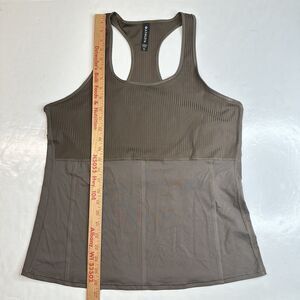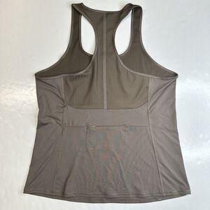 Athleta Vitality Rib Tank Top Womens XL Taupe Brown Active Racerback Sleeveless With Back Pocket EUC Exercise Workout Activewear Sport Running Yoga Training