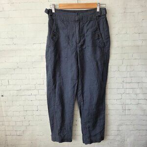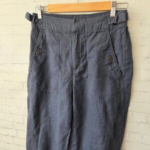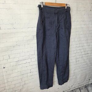 Athleta Voyager 100% Linen Pant Size 2 High Rise Granite Blue Adjustable Waist